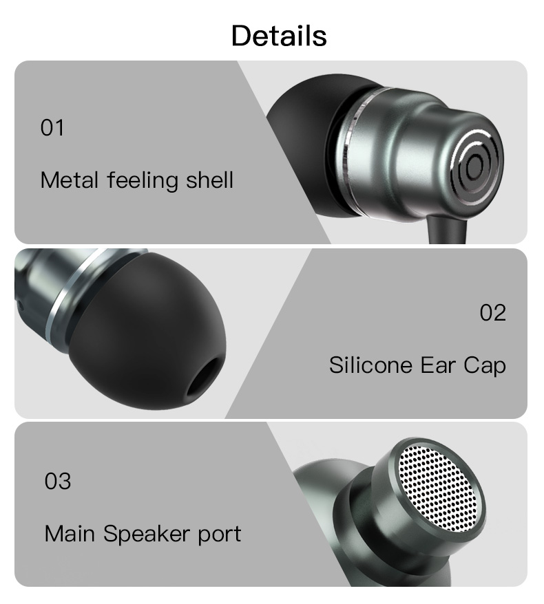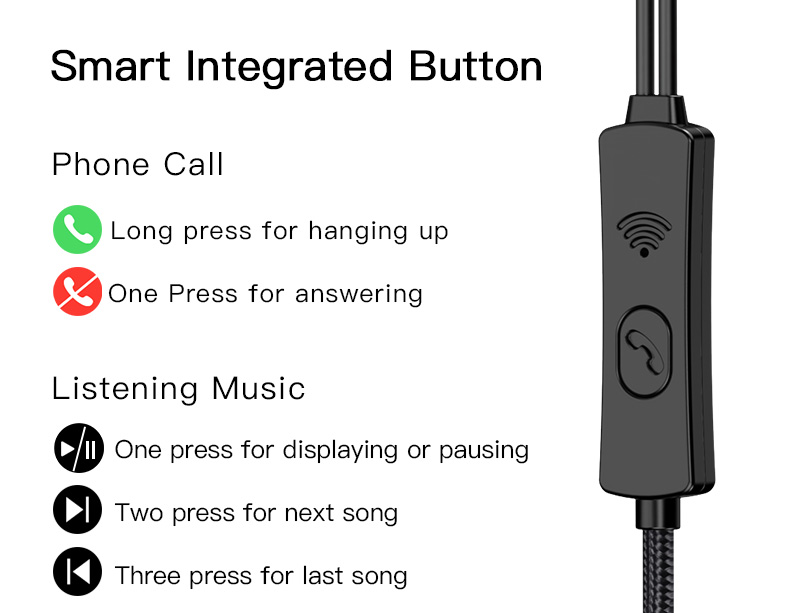 Side-in-ear design One button control 3.5mm Audio connector 10mm driver unit